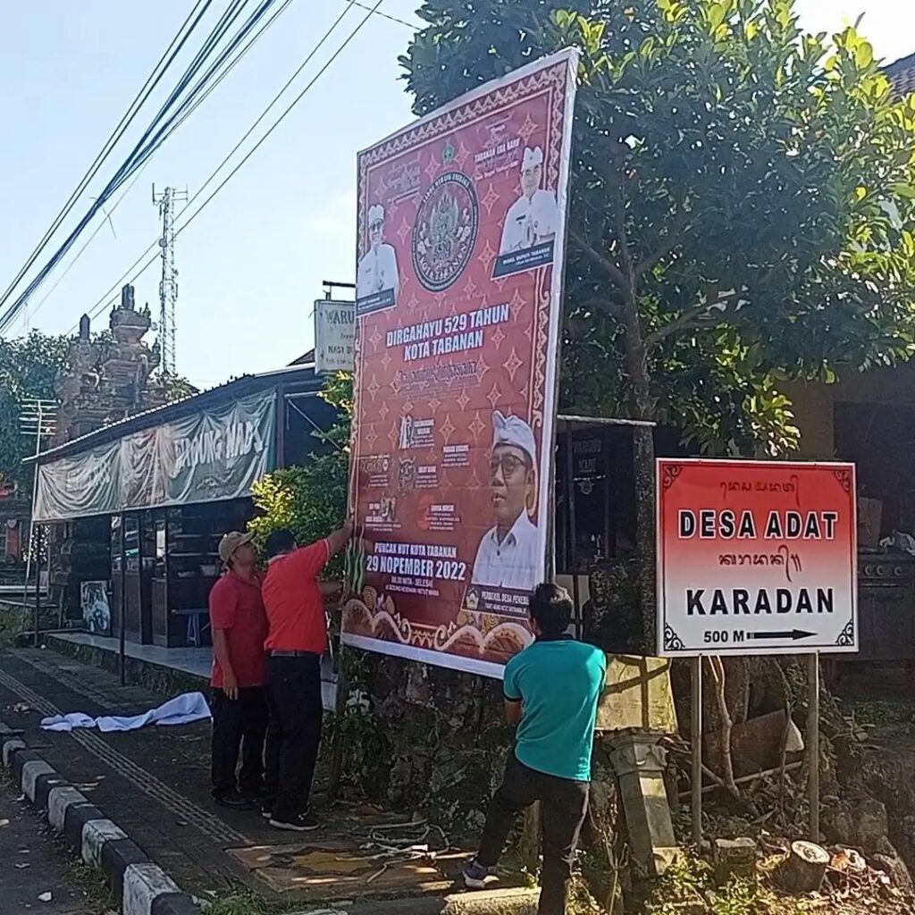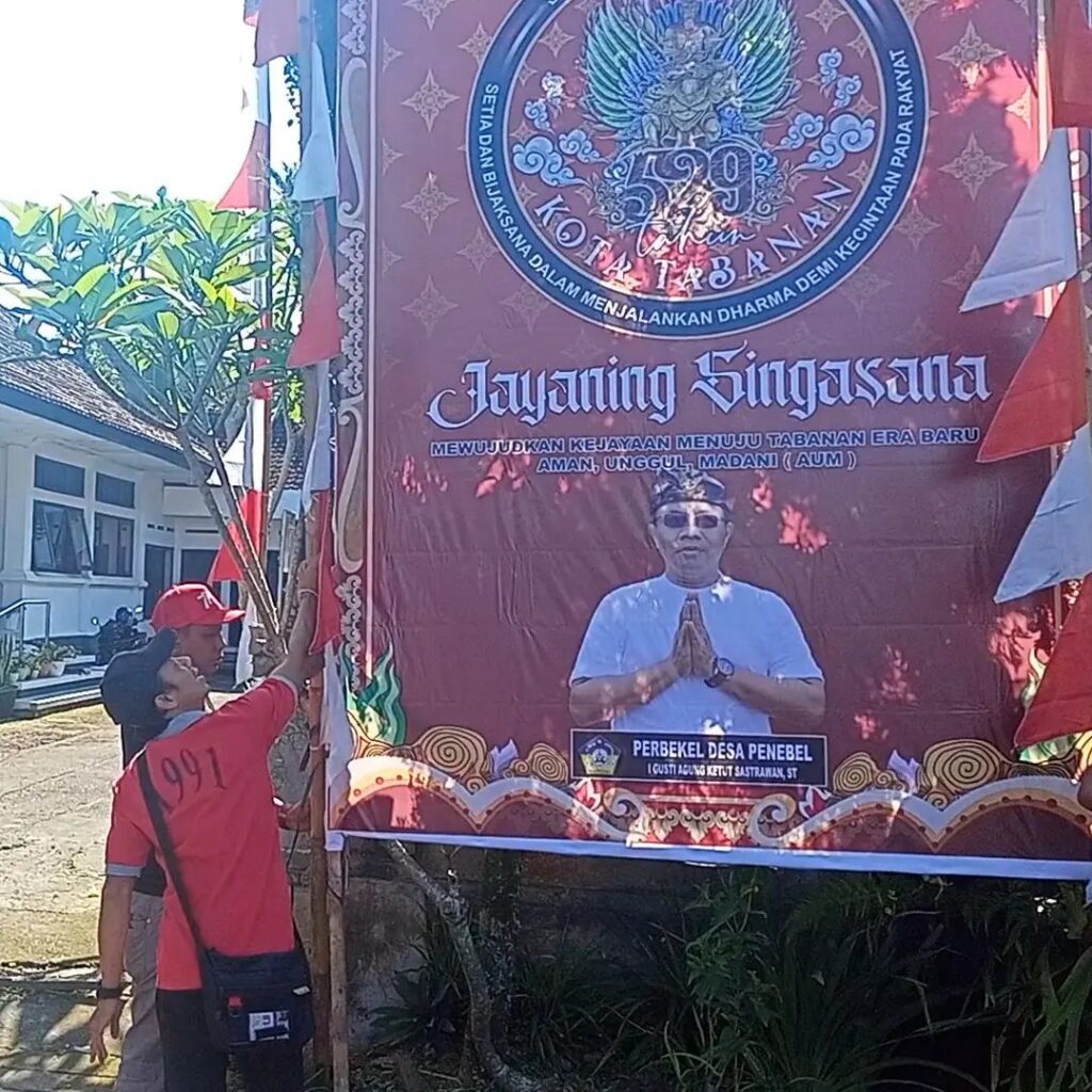 Hari ini, seluruh perangkat Desa Penebel melaksanakan kegiatan pemasangan Bendera dan Baliho dalam rangka HUT Kota Tabanan Ke-592.