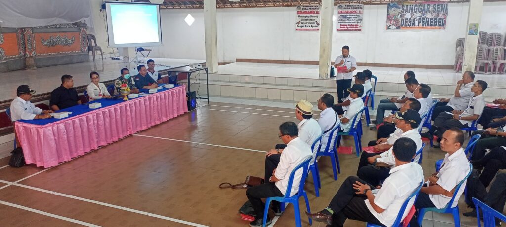 Bimtek dilaksanakan di Balai Serbaguna Desa Penebel yang dihadiri dan dibuka oleh Ibu Kepala Dinas DPMD Kab. Tabanan. Turut hadir pula Bapak Camat Penebel, serta seluruh Perbekel se-Kecamatan Penebel yang ditemani oleh Sekretaris Desa sebagai peserta Bimtek dan juga menghadirkan narasumber dari Kejaksaan Negeri Kabupaten Tabanan. (adm)