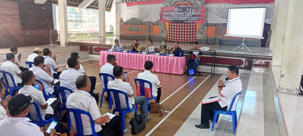 Perbekel Penebel dan Sekretaris Desa Penebel mengikuti Bimtek (18/11/2022) Peningkatan Kapasitas Perbekel terkait Program Jaga Desa dari Kejaksaan Negeri Tabanan.
