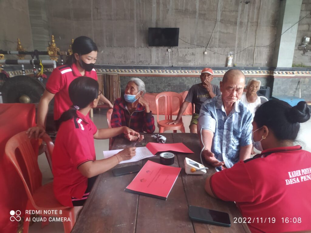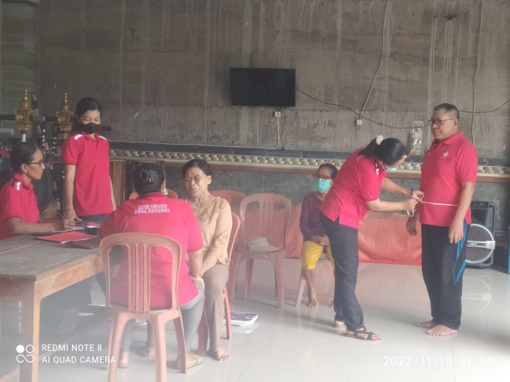 Dalam mensukseskan Posyandu di Desa Penebel, telah ditugaskan 3 Kader Lansia yang akan melaksanakan posyandu di 9 Banjar Dinas setiap bulannya, dimana dalam Posyandu tersebut akan dilaksanakan pengukuran berat badan, tinggi badan, lingkar perut serta pengecekan Tensi.