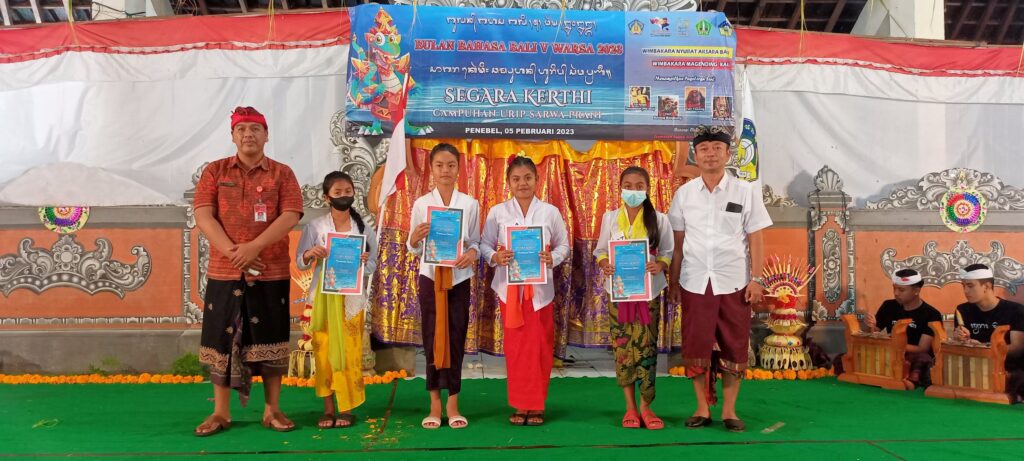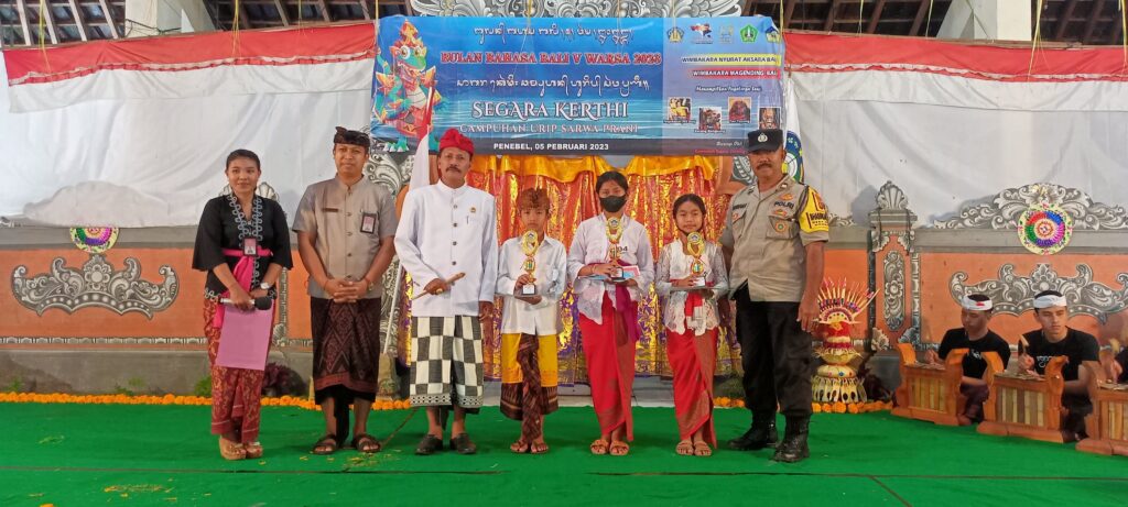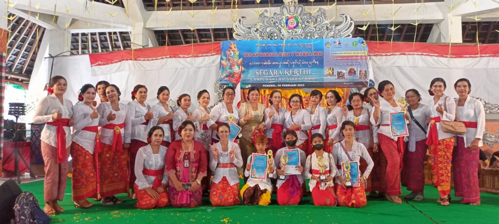 Kegiatan berlangsung aman dan sangat meriah karena warga masyarakat turut hadir menyaksikan perayaan Bulan Bahasa Bali V Tahun 2023 dengan mengambil Tema ” Segara Kerthi : Campuhan Urip Sarwa Prani”.
