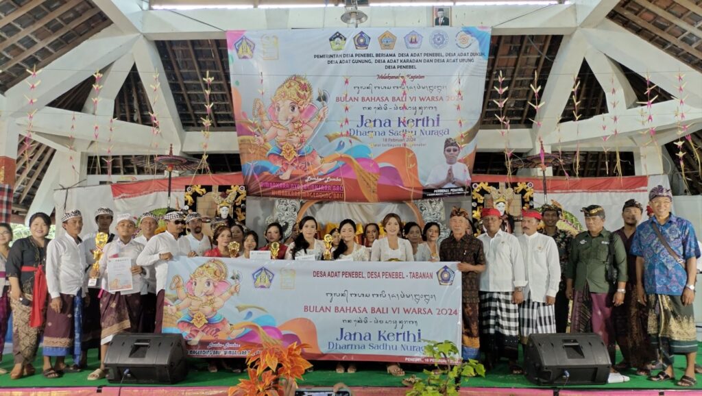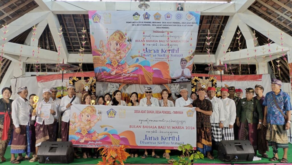Perayaan Bulan Bahasa Bali VI ini mengambil Tema “Jana Kerthi – Dharma Sadhu Nuraga” yang Dibuka Oleh Majelis Alit Desa adat Penebel, serta dihadiri Camat Penebel (Diwakili Bapak Sekcam),  Perbekel Desa Penebel (I Gusti Agung Ketut Sastrawan, ST), Bendesa Adat, Ketua BPD Desa Penebel, Angga Puri Gede Penebel, Babinkamtibmas Desa Penebel, Tokoh masyarakat, Perangkat Desa, Peserta Wimbakara dan masyarakat di wilayah Desa Penebel.