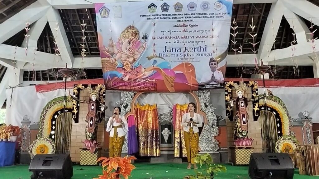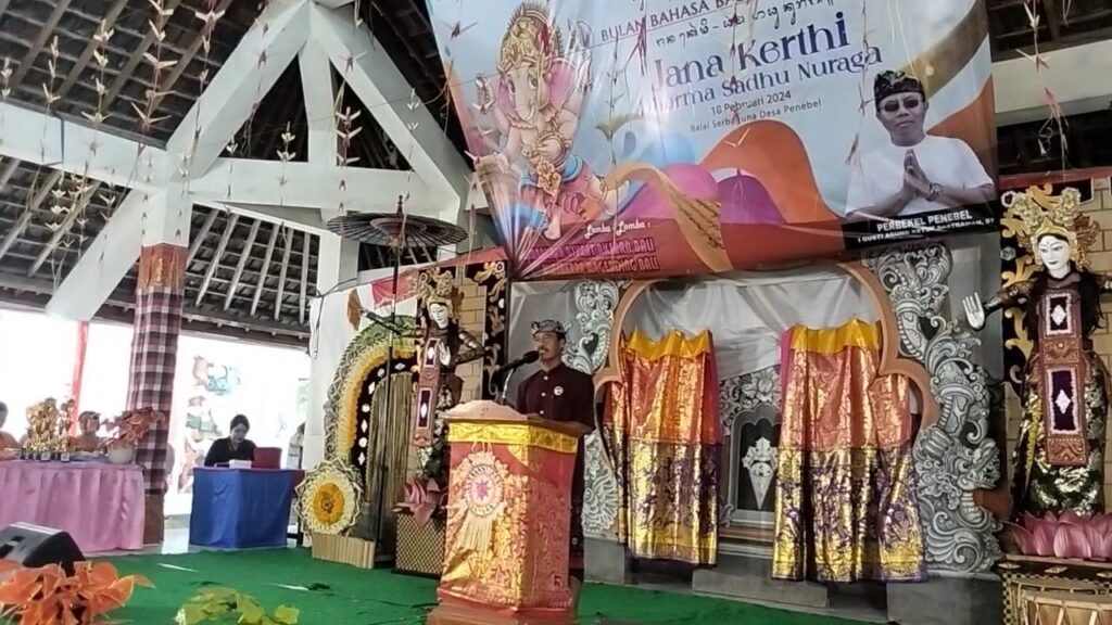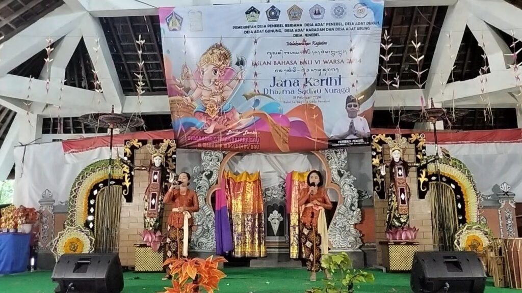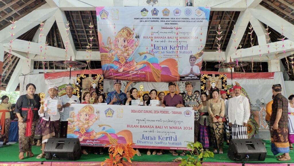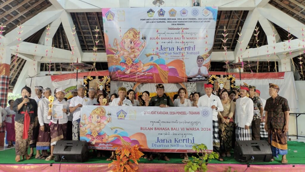 Pemerintah Desa Penebel bersama Desa Adat Penebel, Desa Adat Ubung, Desa Adat Karadan, Desa Adat Dukuh dan Desa Adat Gunung melaksanakan kegiatan perayaan Bulan Bahasa Bali VI di Balai Serbaguna Desa Penebel.